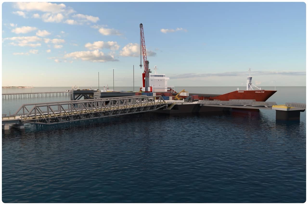 The floating wharf’s design ensures consistent and safe operational efficiency across tidal variations. There are extremely limited windows that specific cargo that cannot be offloaded, however, they can be staged on the wharf prior to these periods to ensure 24hr loading of vessels.